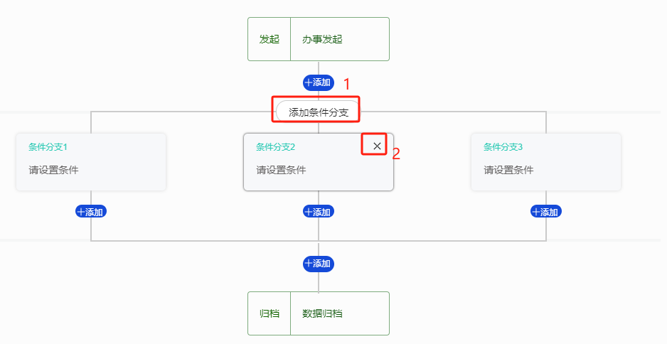 另外,点击“添加条件分支”可添加一个条件分支,点击“x”可删除对应的条件分支。
