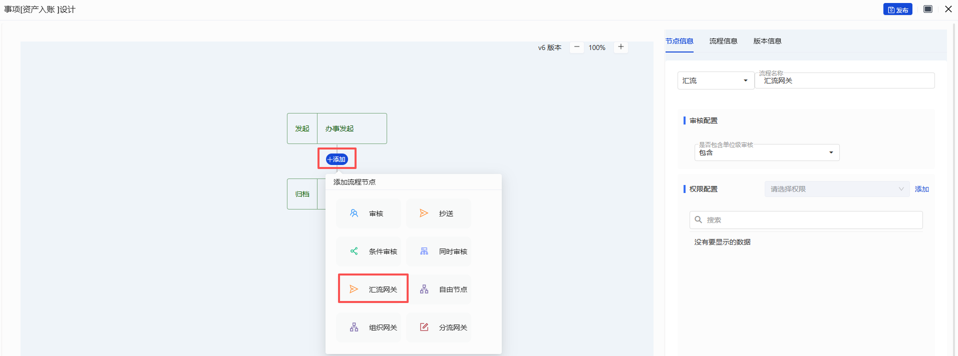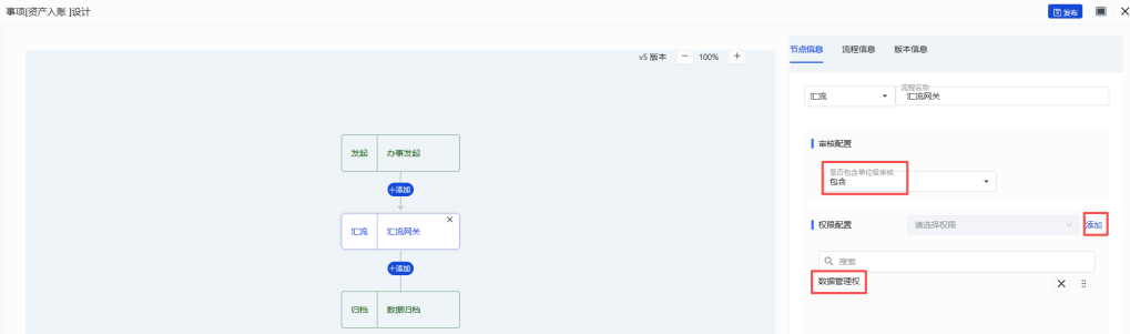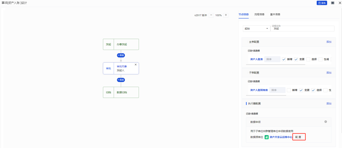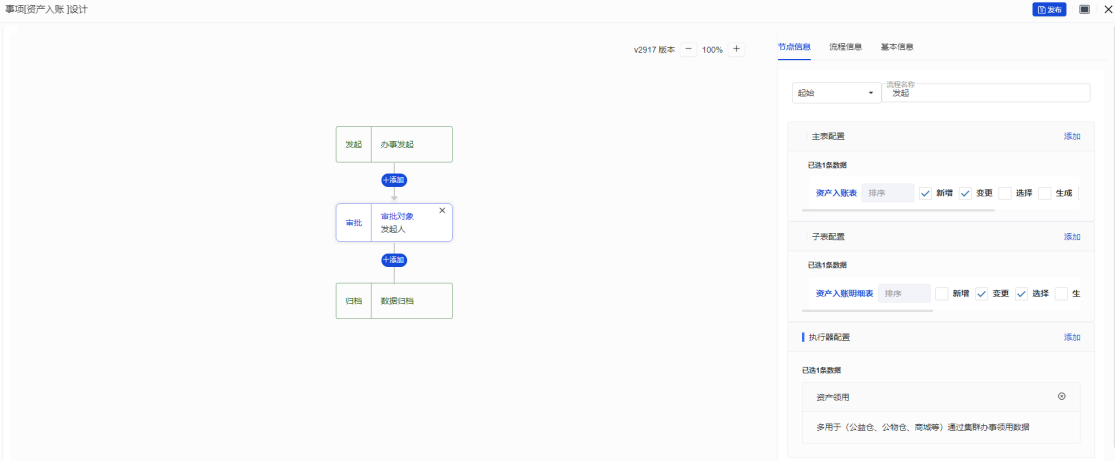 确定资产入账流程控制需求,在办事设计页面,开始设计办事。