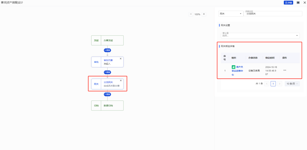 绑定成功再进入设计办事,点击分流网关节点,可查看到网关绑定详情中有自己单位的办事。