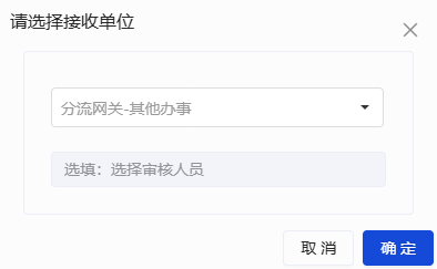 办事流程发起后,办事发起单位需选择对应的分流网关中的办事单位,流程审批会走到选择的单位中,使用场景如:调拨业务等。