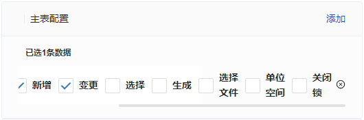 点击“添加”,选择对应的主表表单,点击确认。点击删除图标删除对应的主表表单。