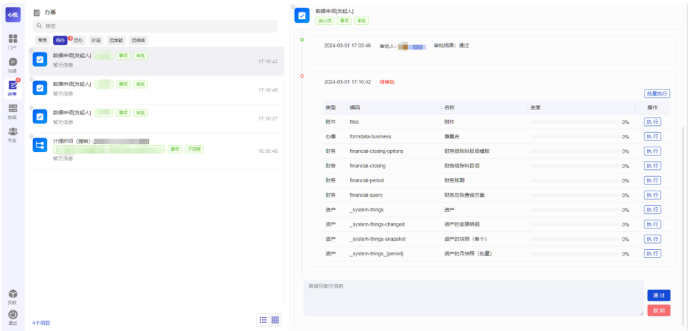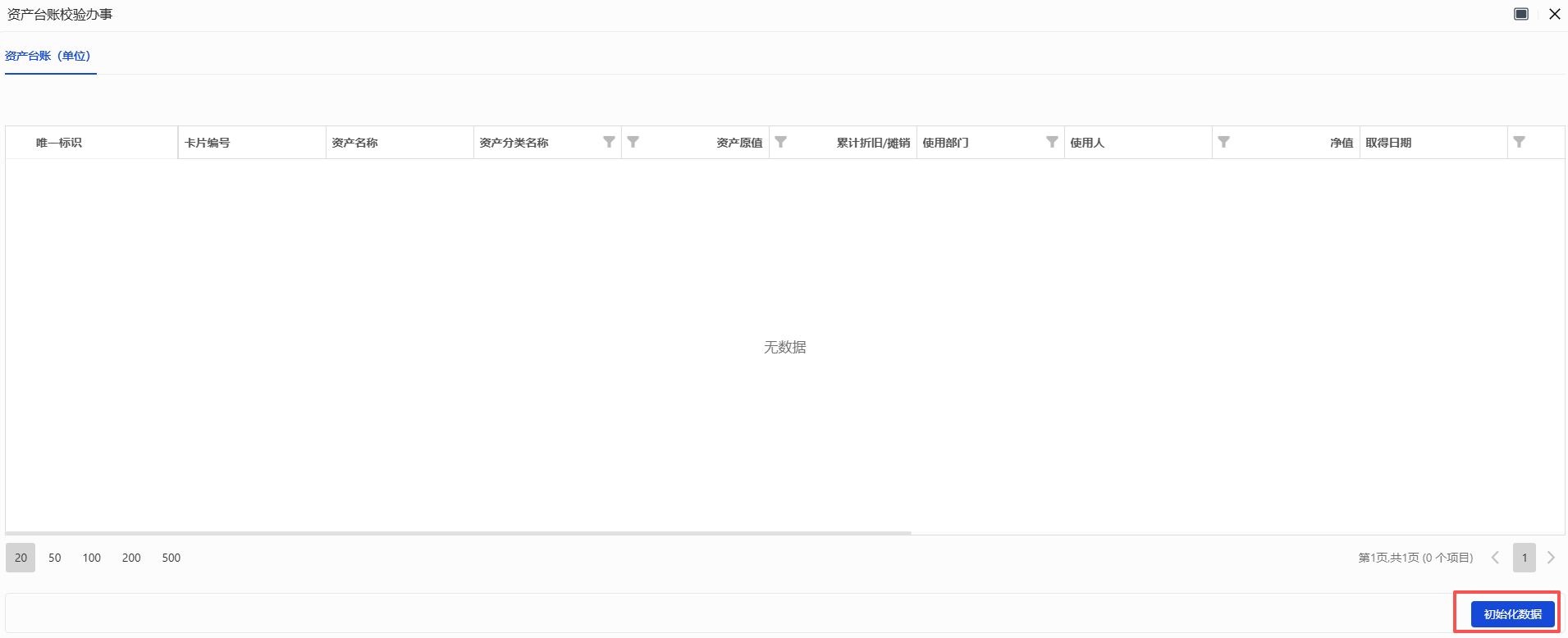 点击办事,点击右下角“初始化数据”按钮,校验数据。