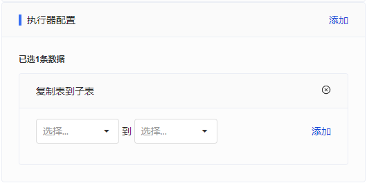 点击“添加”,选择对应的子表表单,点击确认。点击删除图标删除对应的子表表单。
