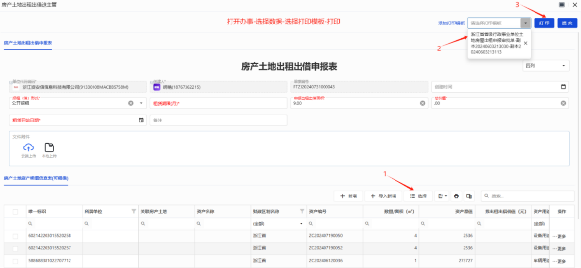 另外在办事页签查看流程详情中,添加配置好的打印模板后,也可选择进行打印。