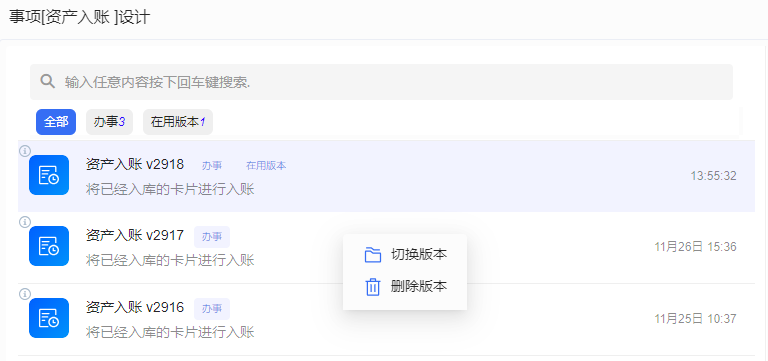 平台支持办事存在多个版本,支持流程使用不同的办事设计版本。