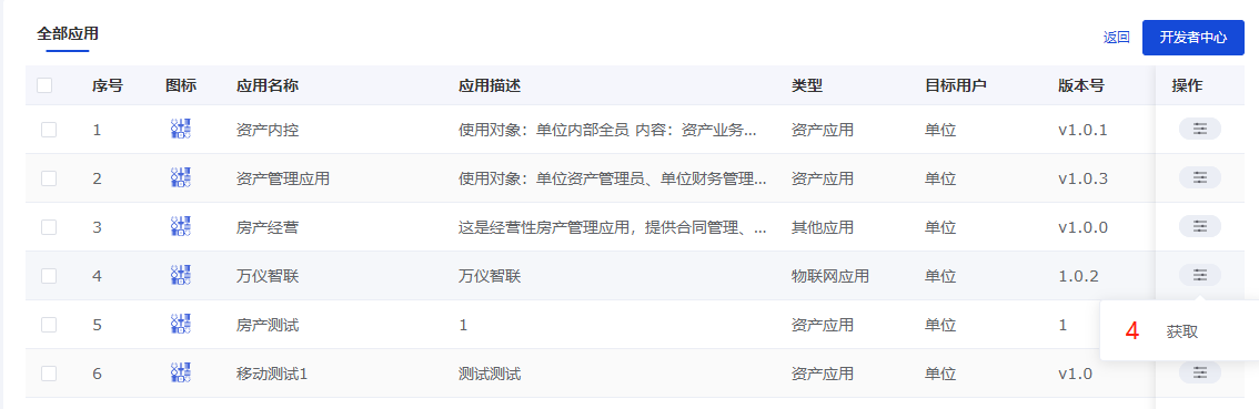 - 点击左上角【获取】按钮,选择应用存入对应的应用中心。