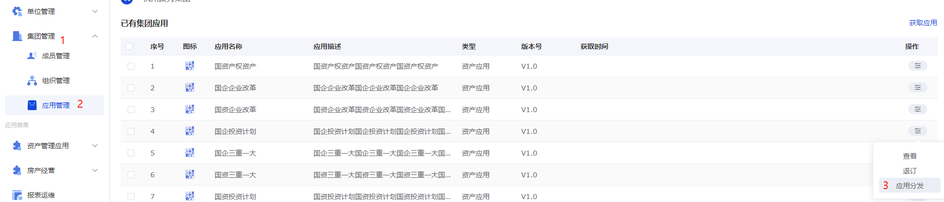 下面将介绍如何将集团应用中心的应用分发给单位。集团应用只有分发给单位,在通过单位应用中心分配的用户。