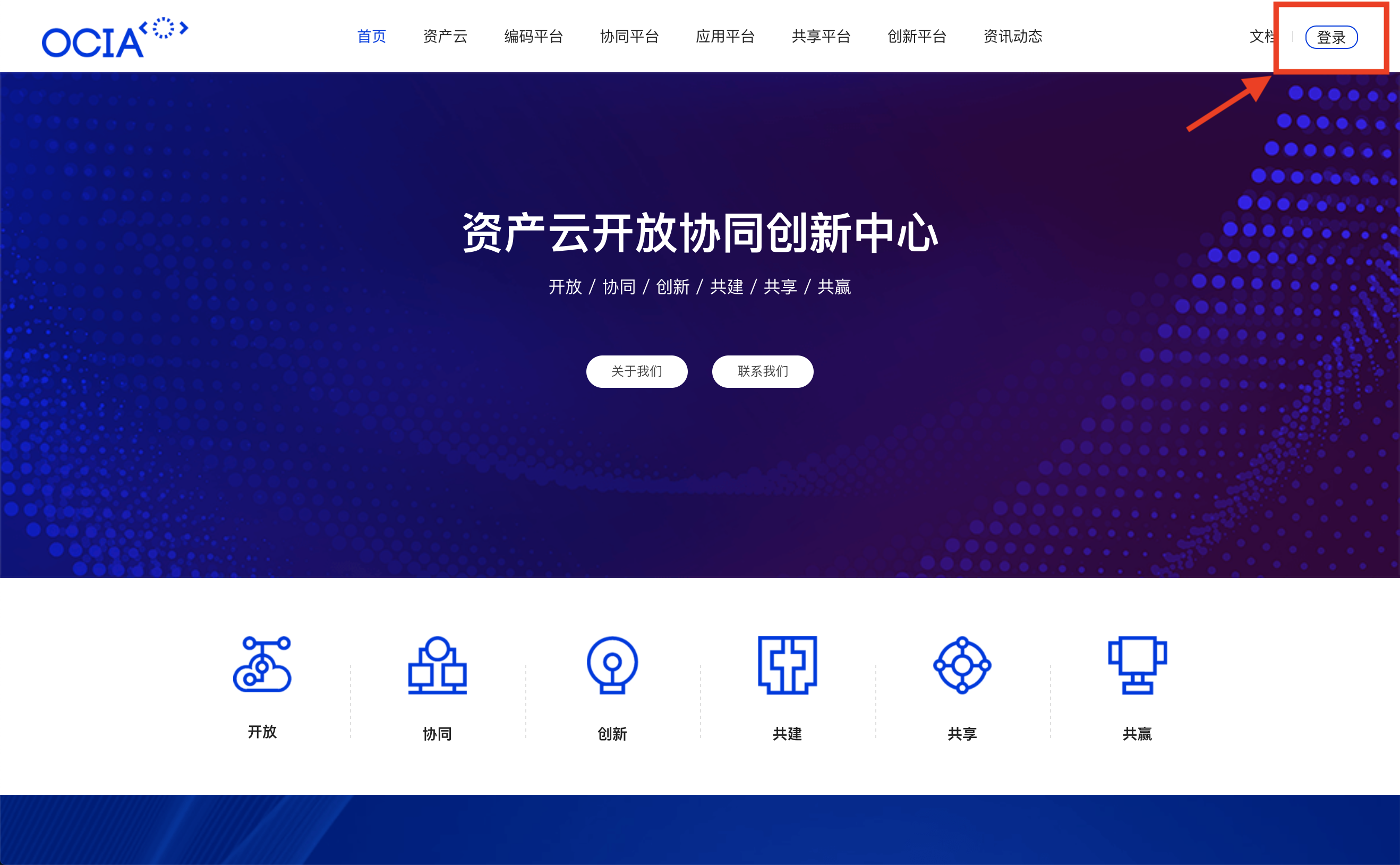 ​ 打开链接资产云官网 (opens new window),点击右上角【登录】