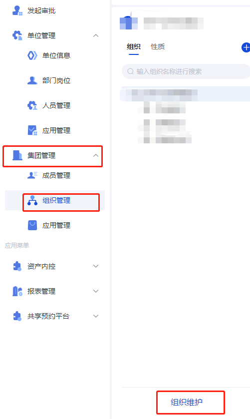 组织管理进入组织管理界面 - 点击下方【组织维护】按钮,进入组织维护界面