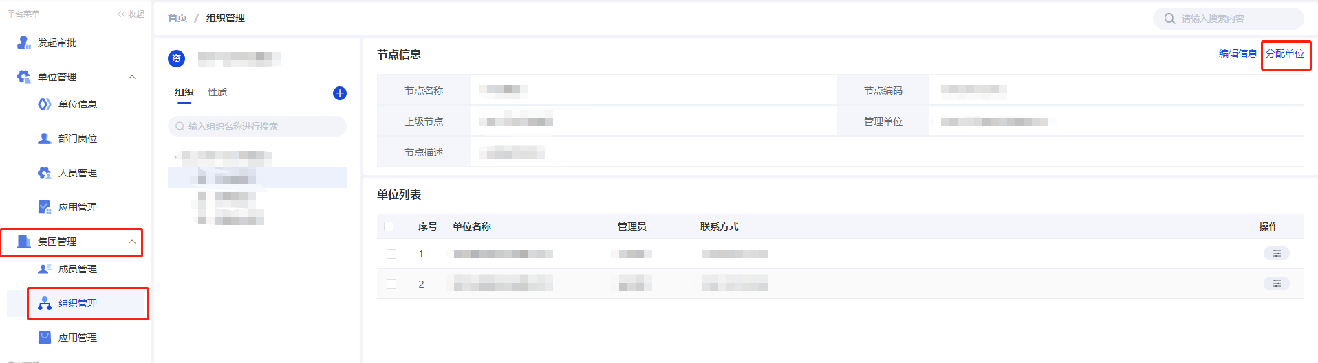 - 点击右侧【分配单位】按钮