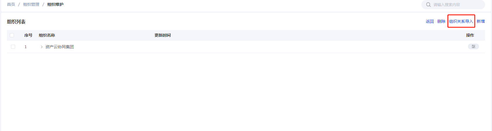 - 点击右侧【组织关系导入】按钮,进入集团关系导入界面